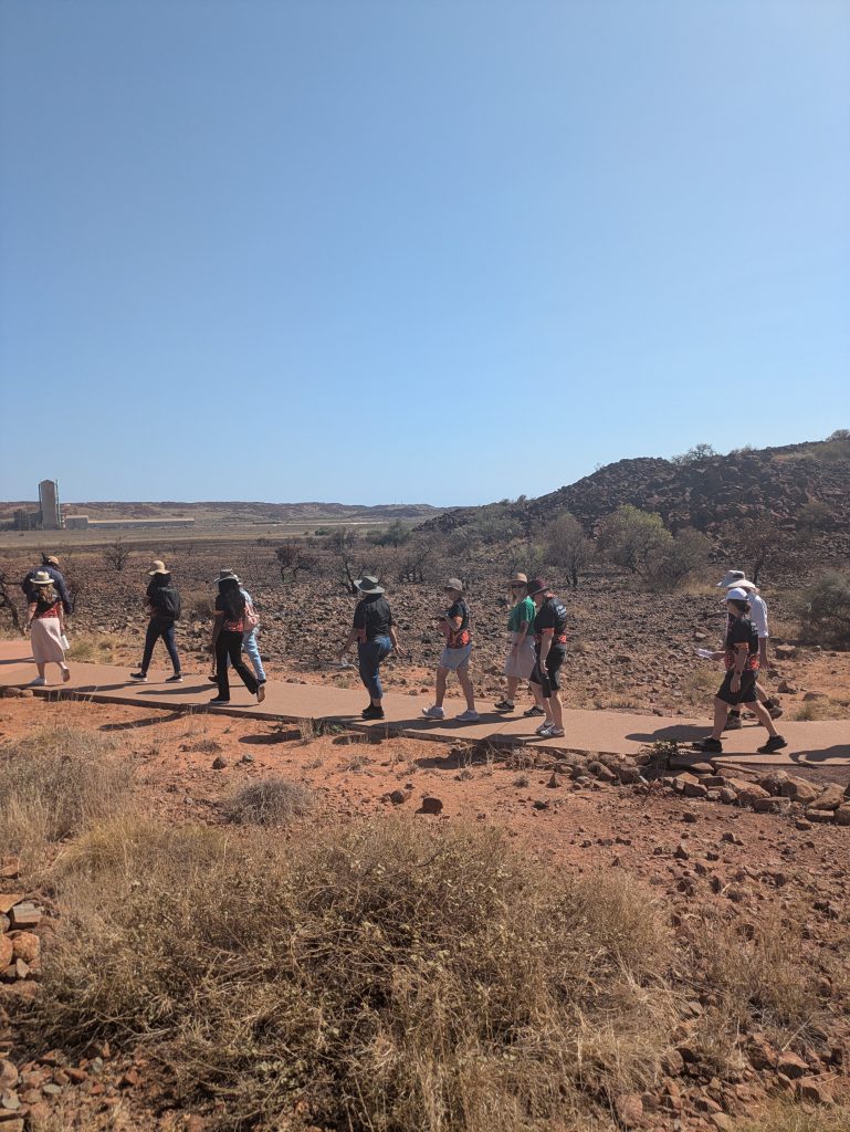I spent the Monday at the PCLS Karratha office and had some great chats with lots of different staff members about their work and their experiences living in the Pilbara. On Tuesday, I joined PCLS’s Staff Development Day, which began with Cultural Awareness Training on Yaburara Country. It was a quite surreal experience learning about history stretching back tens of thousands of years, at a UNESCO World Heritage listed site (the Murujuga rock art), while just the other side of the bay an active mine went about its business. In the afternoon, I presented at the PCLS staff development day on national community legal sector advocacy, and to provide a basic media 101.
